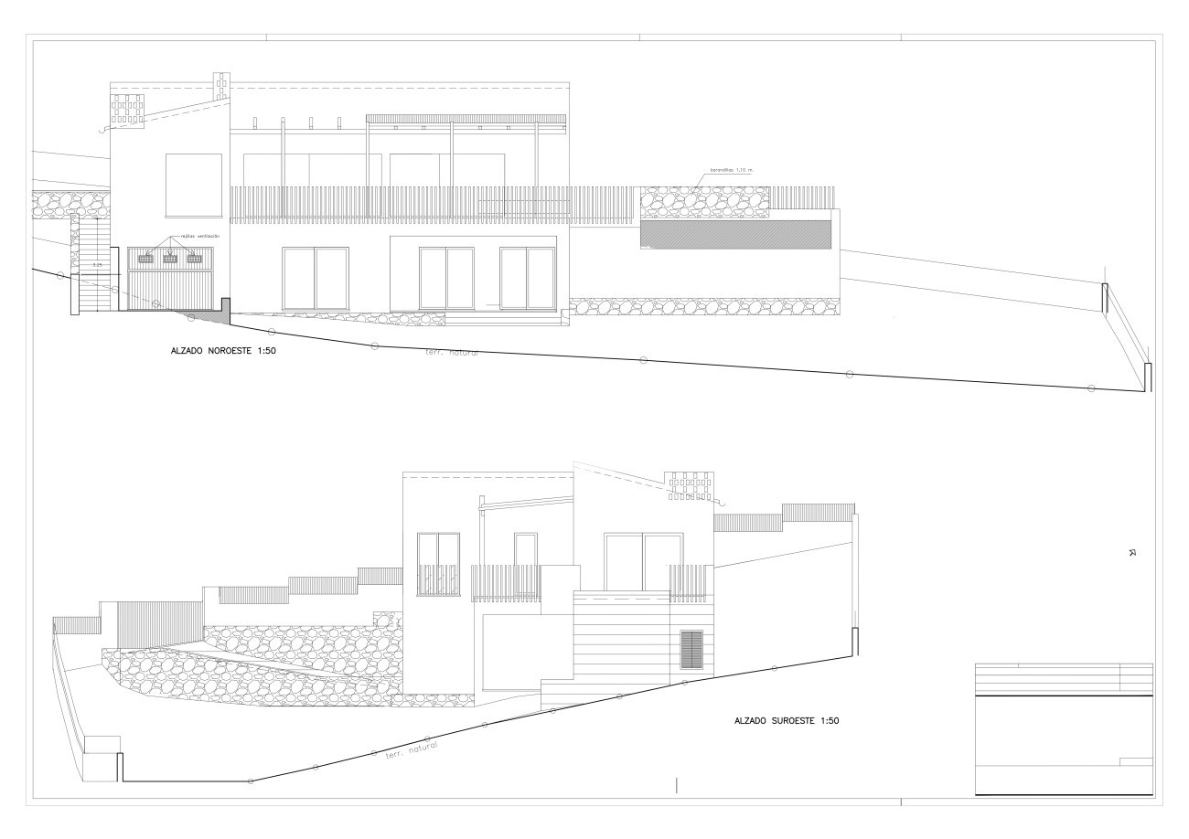 A spacious villa has been conceived, with open spaces and whose closed constructed area will be around 238 sqm plus porches and terraces. The distribution on two floors, with a living-dining room-kitchen plus a suite and a courtesy toilet on the ground floor and bedrooms on the lower floor, is perfect to fully enjoy the sea views from the areas of the house where you spend more time.