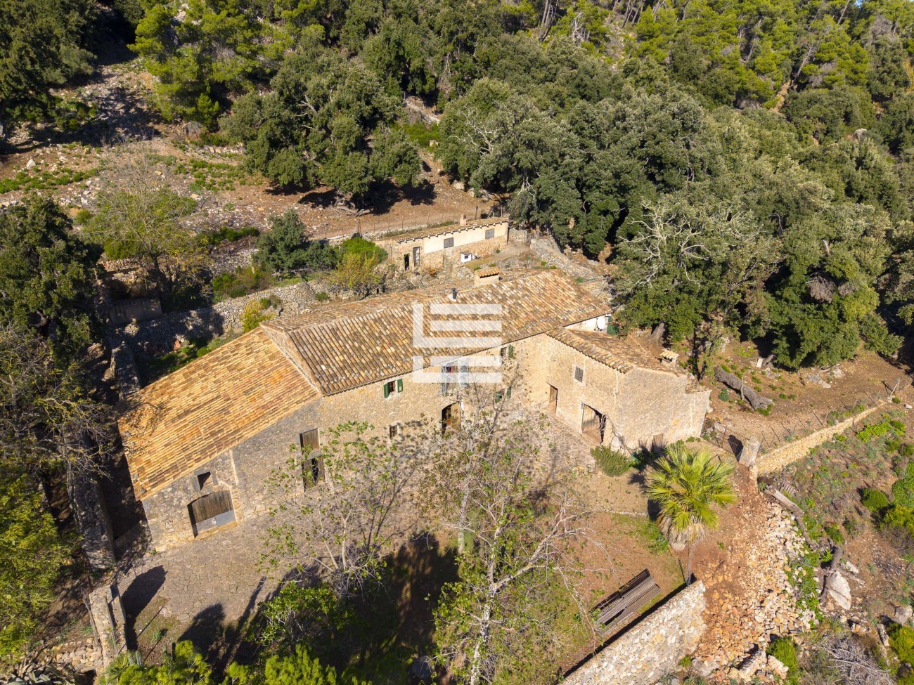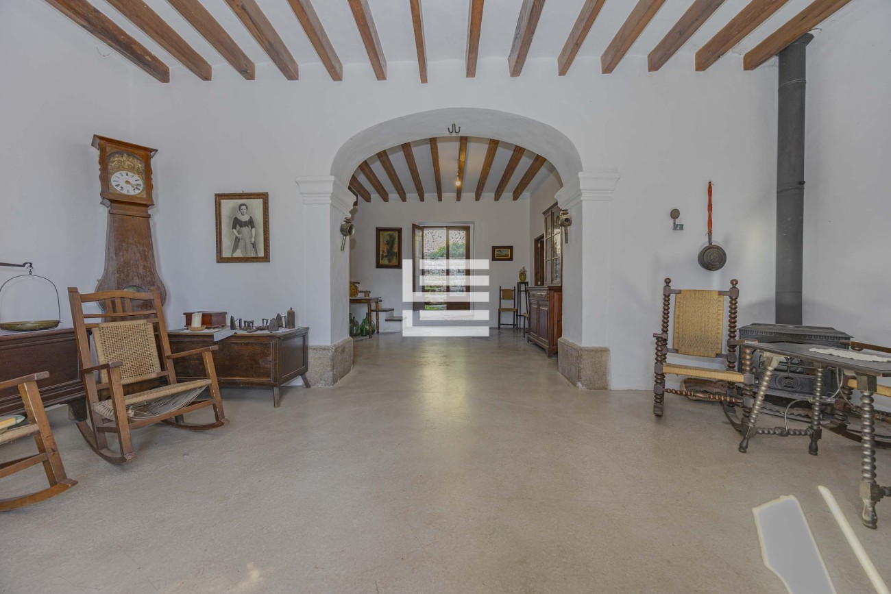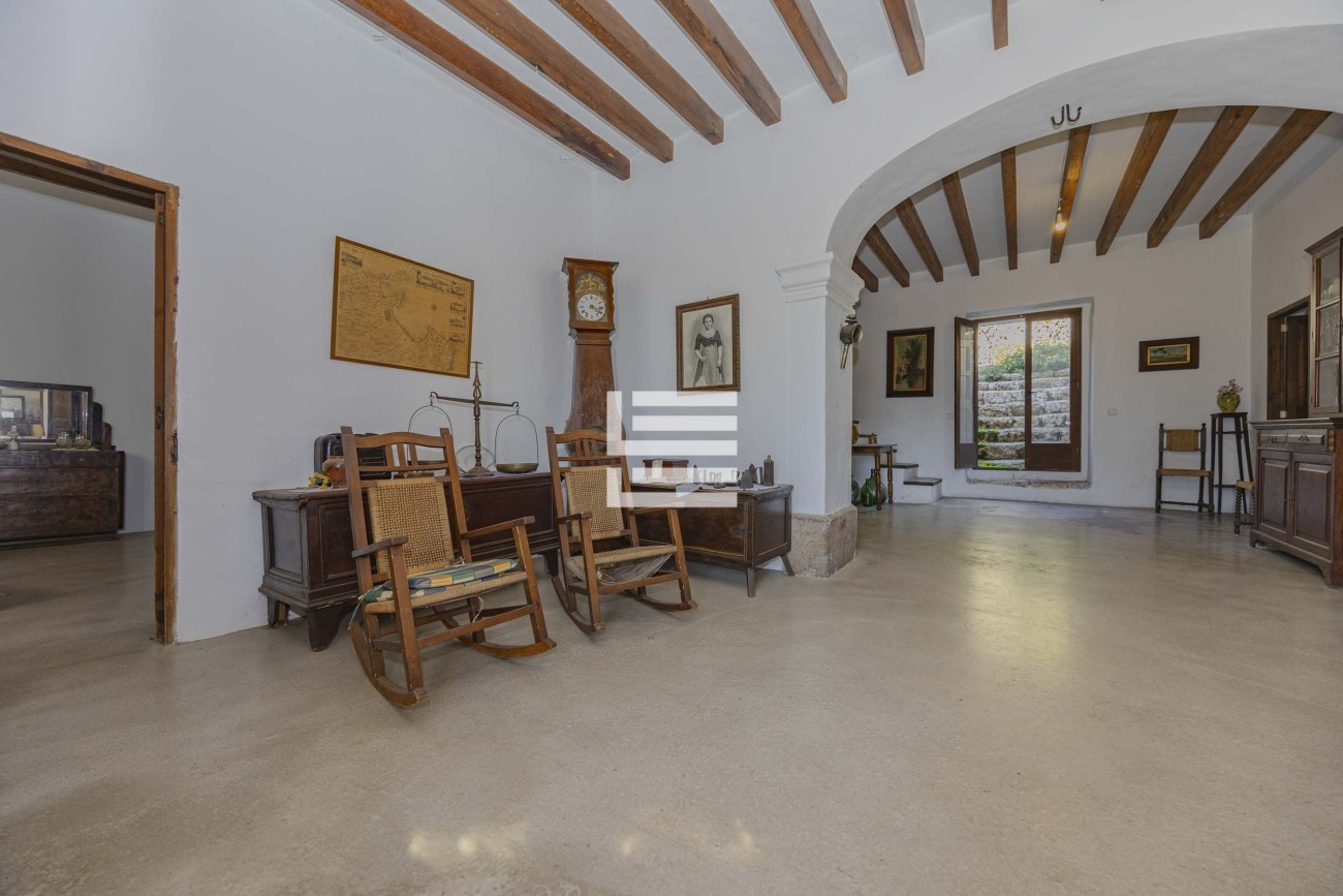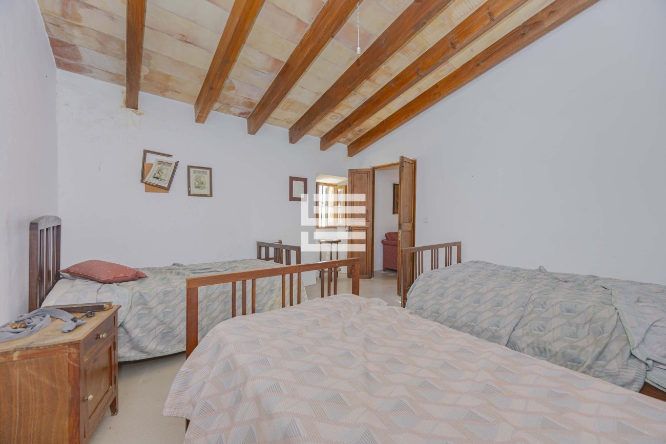 The property is made up of four plots that add up to a total of 2,530,000 m². The main house, of more than 650 m² built, is in good condition and preserves the traditional Mallorcan style. It has seven bedrooms, two bathrooms, a kitchen and several living rooms that maintain the original character of the house.