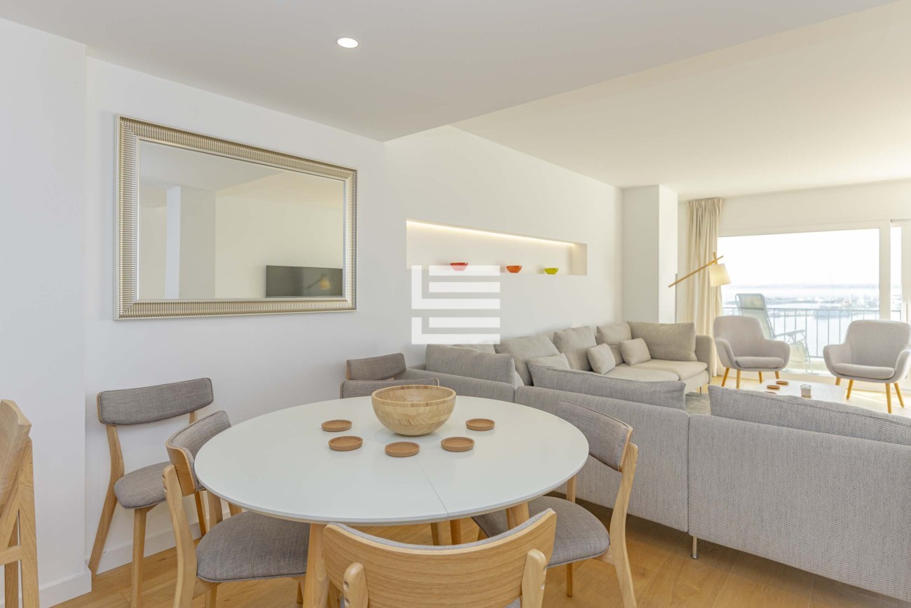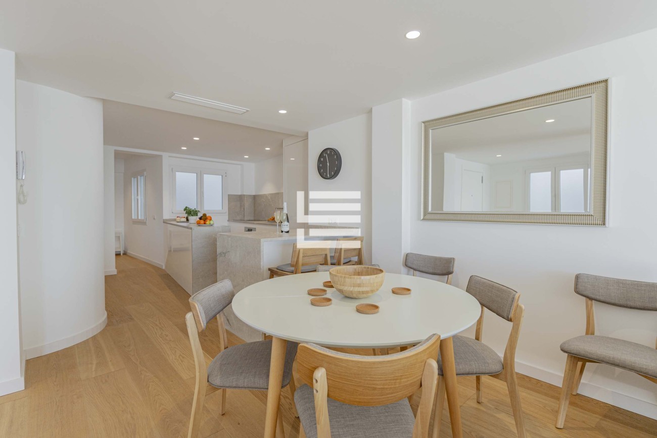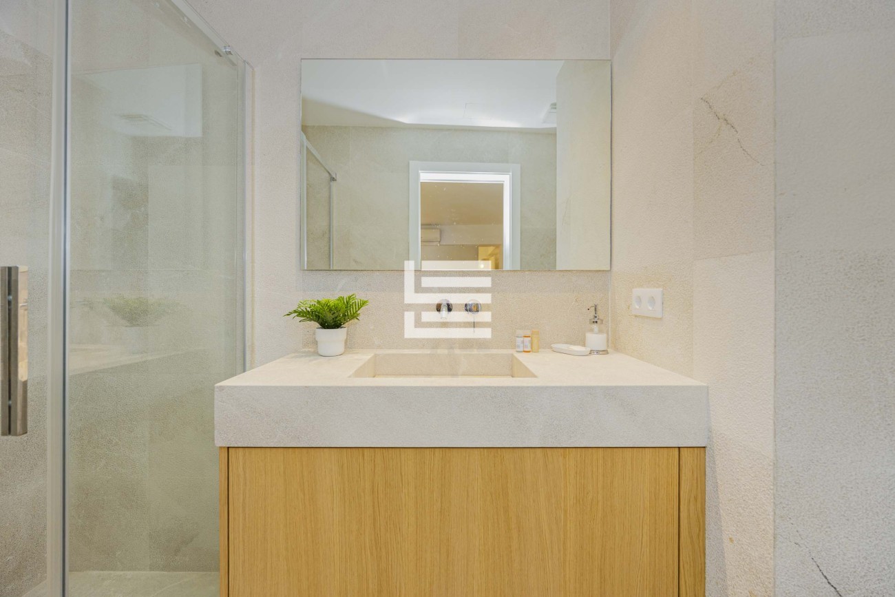 The layout flows naturally toward the sea. The open-concept living and dining area serves as the heart of the home, a space bathed in Mallorcan sunlight that merges seamlessly with the outdoor terrace, creating the perfect setting for sunset dinners or unforgettable sunrises.