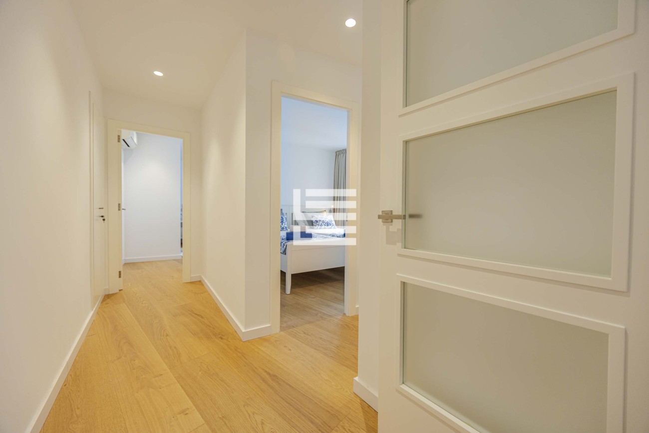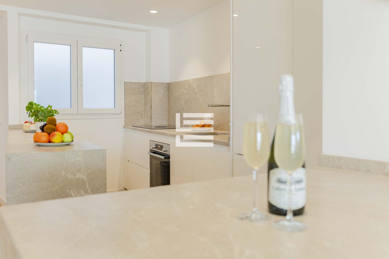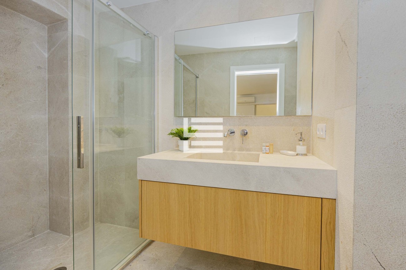 The layout flows naturally toward the sea. The open-concept living and dining area serves as the heart of the home, a space bathed in Mallorcan sunlight that merges seamlessly with the outdoor terrace, creating the perfect setting for sunset dinners or unforgettable sunrises.