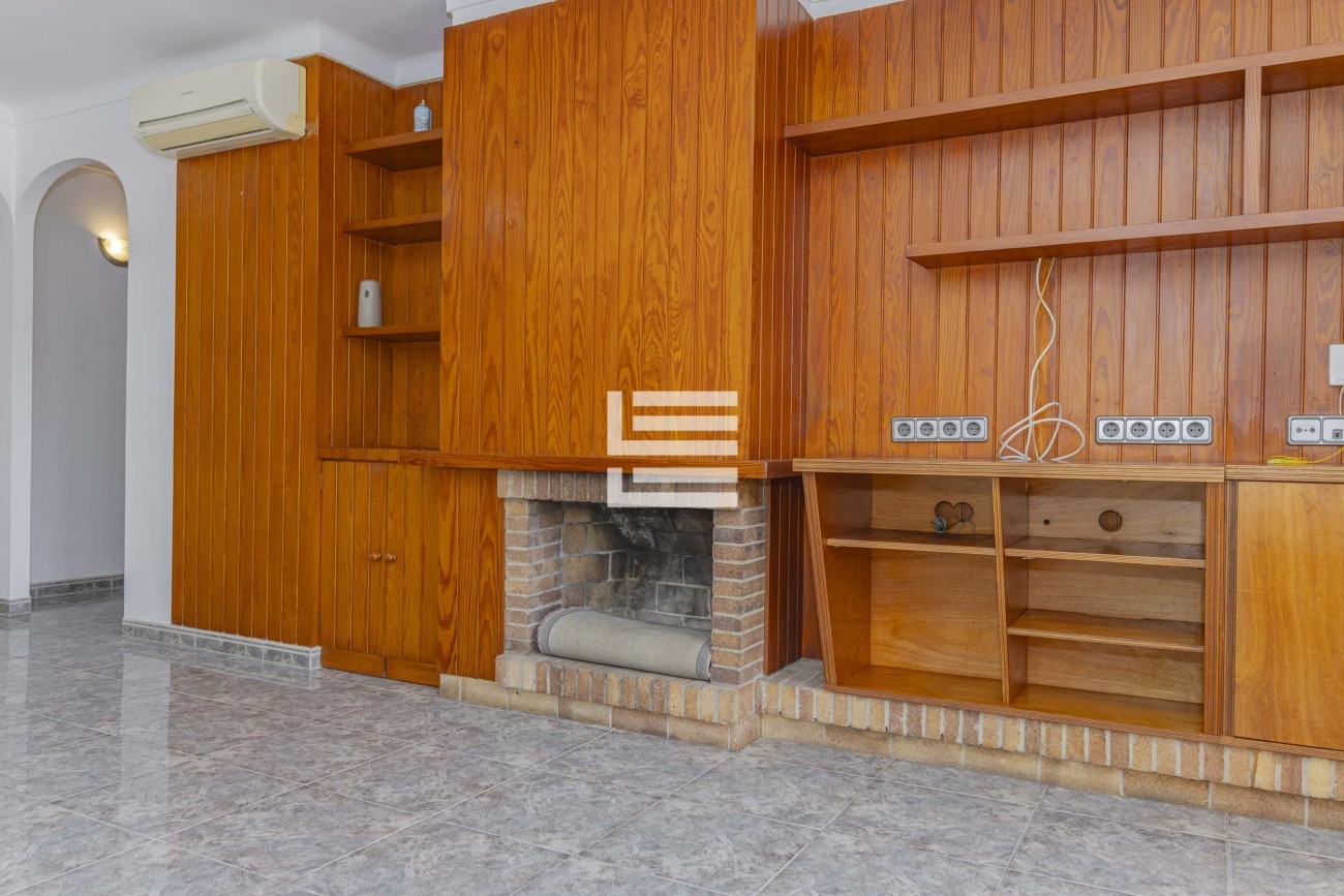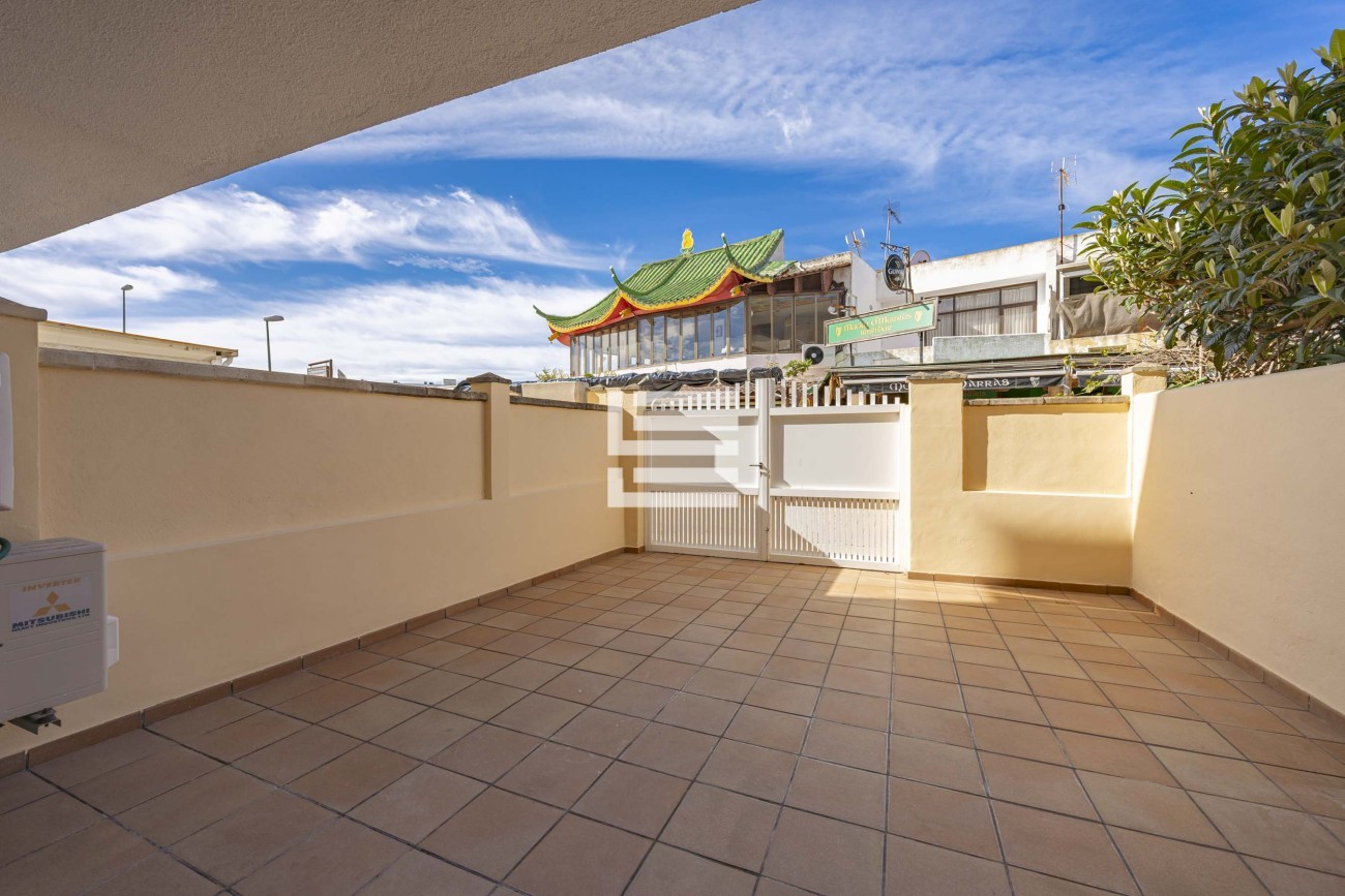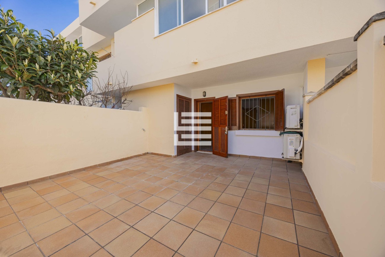Desde el salón se accede a una agradable terraza, ideal para relajarse o disfrutar de las suaves noches mediterráneas. Además, la propiedad ofrece una práctica área de aparcamiento para un coche, sumando comodidad al día a día.