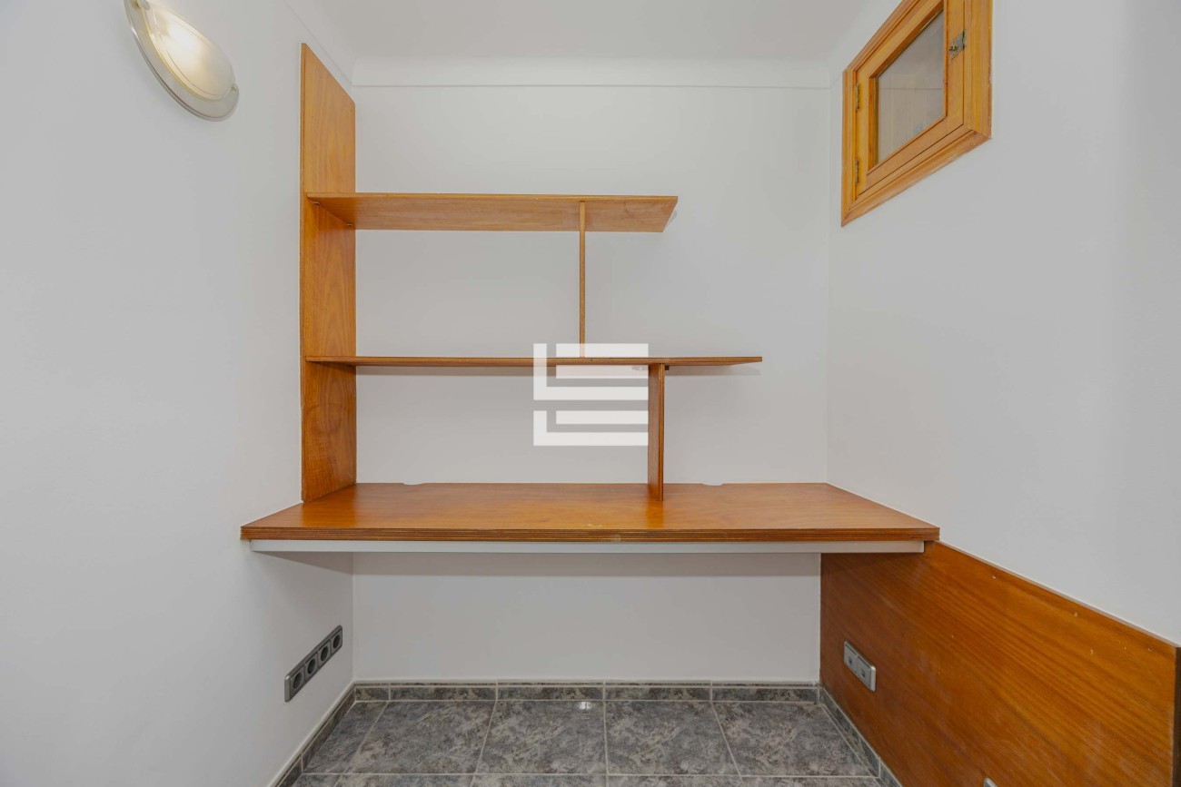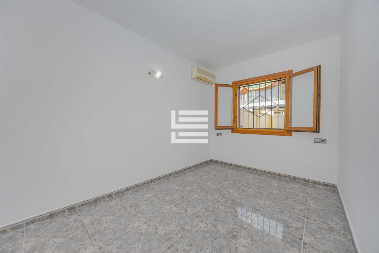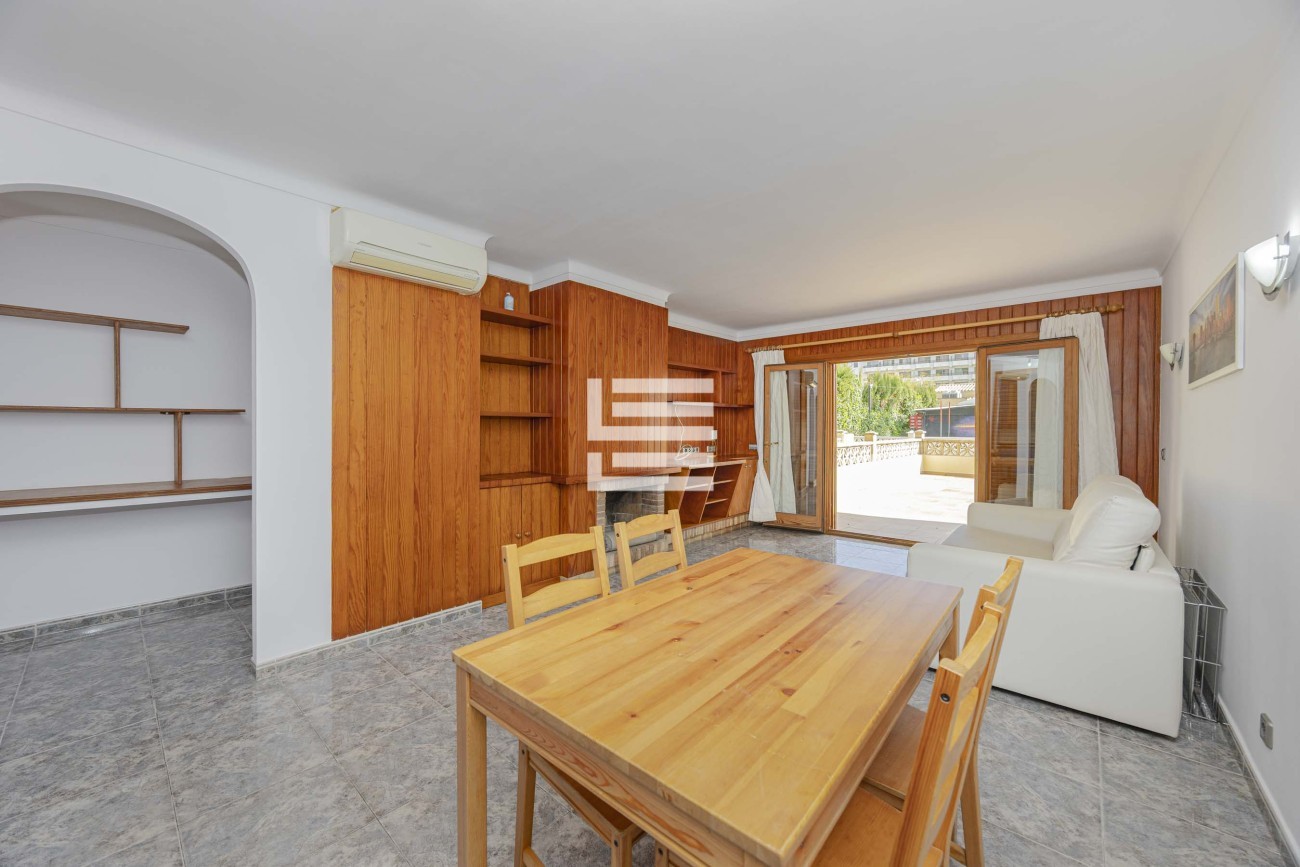 Desde el salón se accede a una agradable terraza, ideal para relajarse o disfrutar de las suaves noches mediterráneas. Además, la propiedad ofrece una práctica área de aparcamiento para un coche, sumando comodidad al día a día.