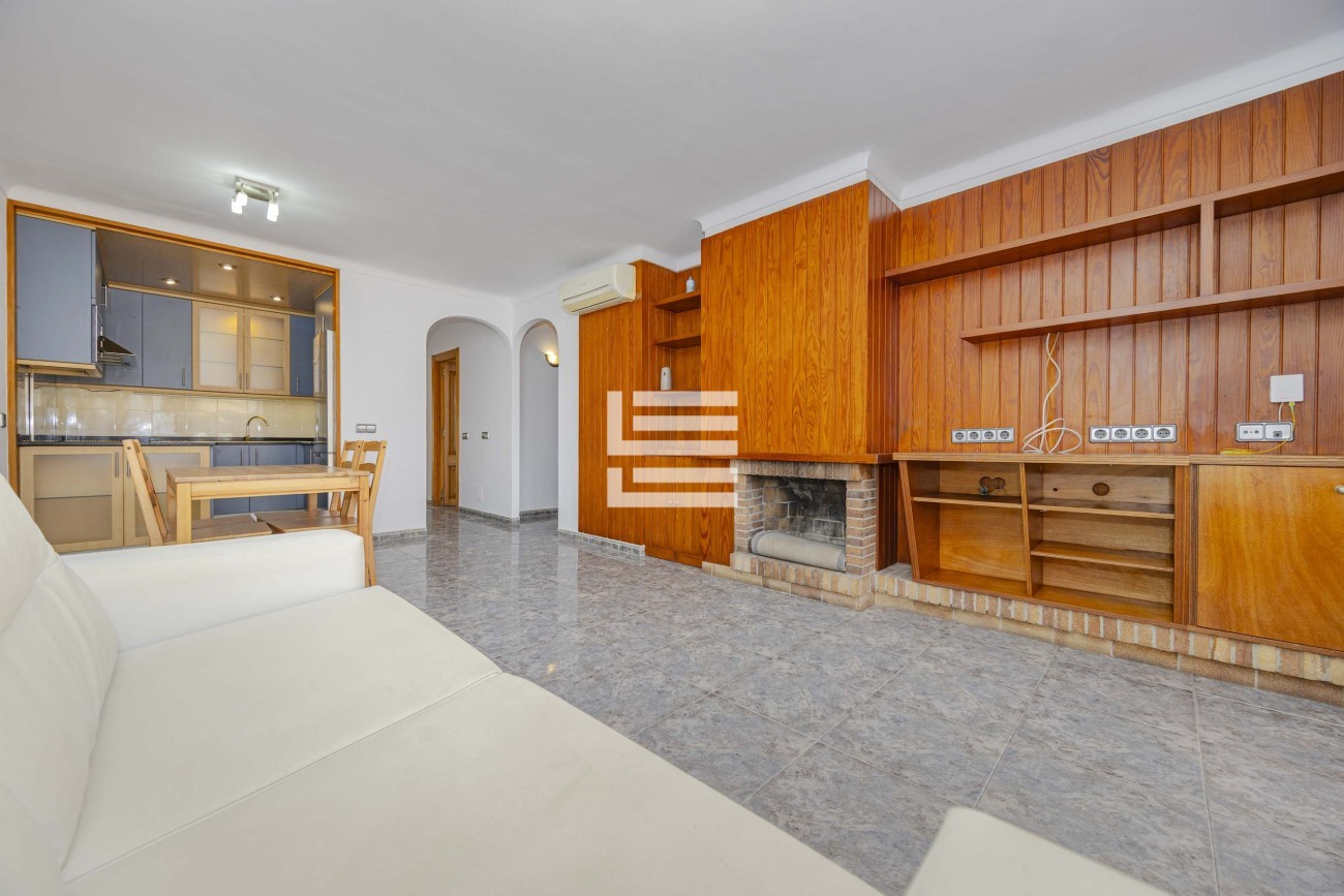 Con una superficie construida de 66 m², esta luminosa vivienda se distribuye de forma práctica y acogedora. Cuenta con dos dormitorios (uno doble y uno individual), un baño completo y una elegante cocina abierta, amueblada y equipada, que se integra perfectamente con el salón-comedor. Este espacio principal se realza con una encantadora chimenea, perfecta para crear un ambiente cálido y acogedor durante los meses de invierno, aportando carácter y confort al hogar.